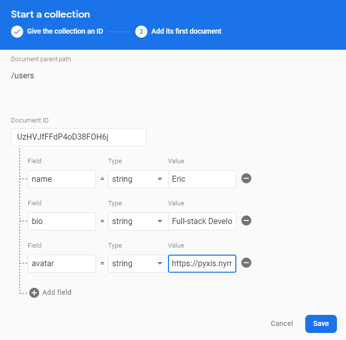 They have a variety of data structure to pick from but overall, you can change these no matter what and NoSQL database don’t really care about the data structure anyways, so I wouldn’t worry about it anyways. Along with this you can give the structure an initial value if you want, like I did or leave it blank.